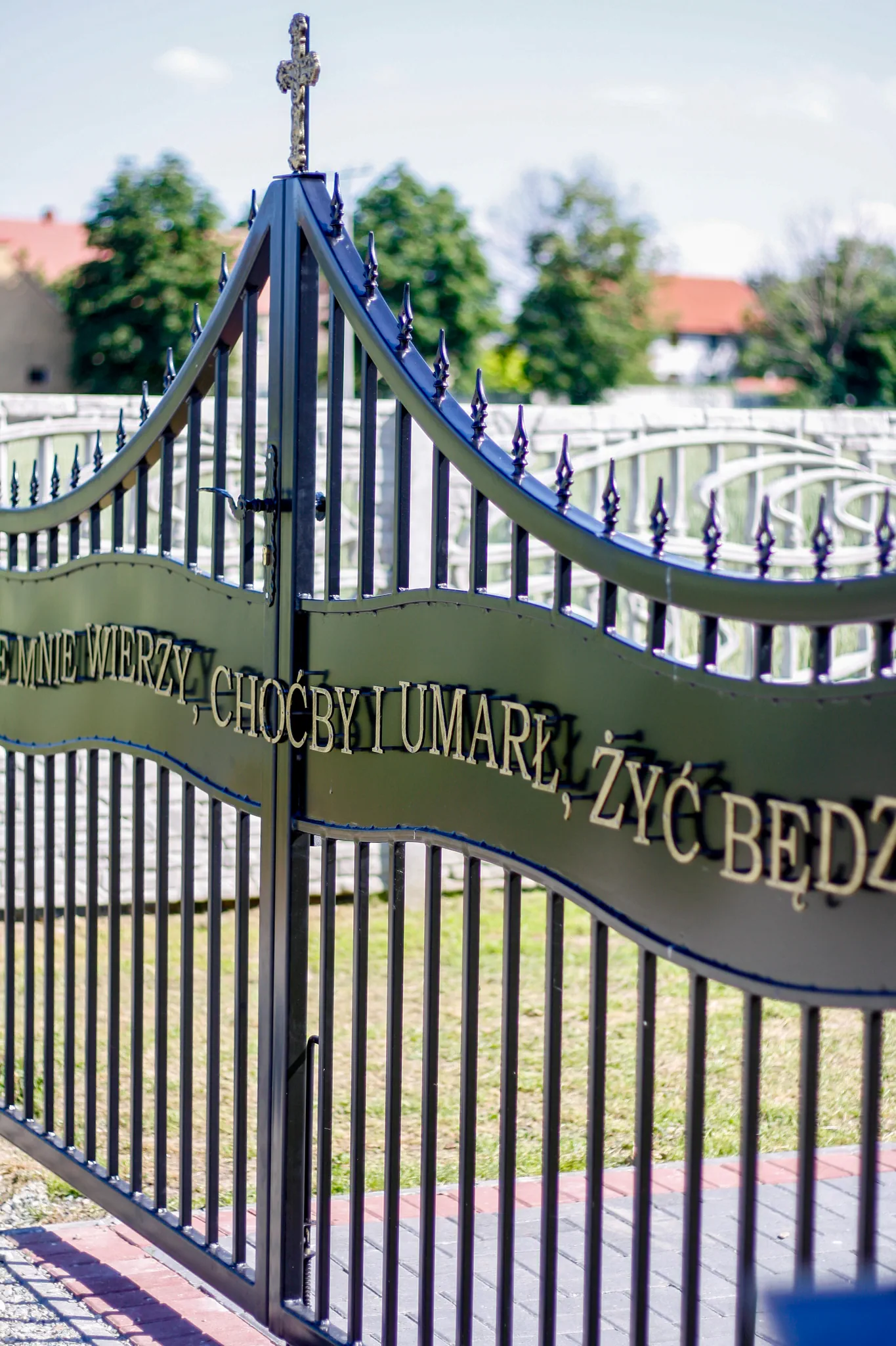 Ogrodzenie cmentarne wykonaliśmy ze stali ocynkowanej z malowaniem proszkowym. Projekt zaakceptowała Rada Parafialna. Zależało nam, aby całość była nietuzinkowa i elegancka, a jednocześnie godnie wpisywała się w charakter miejsca.