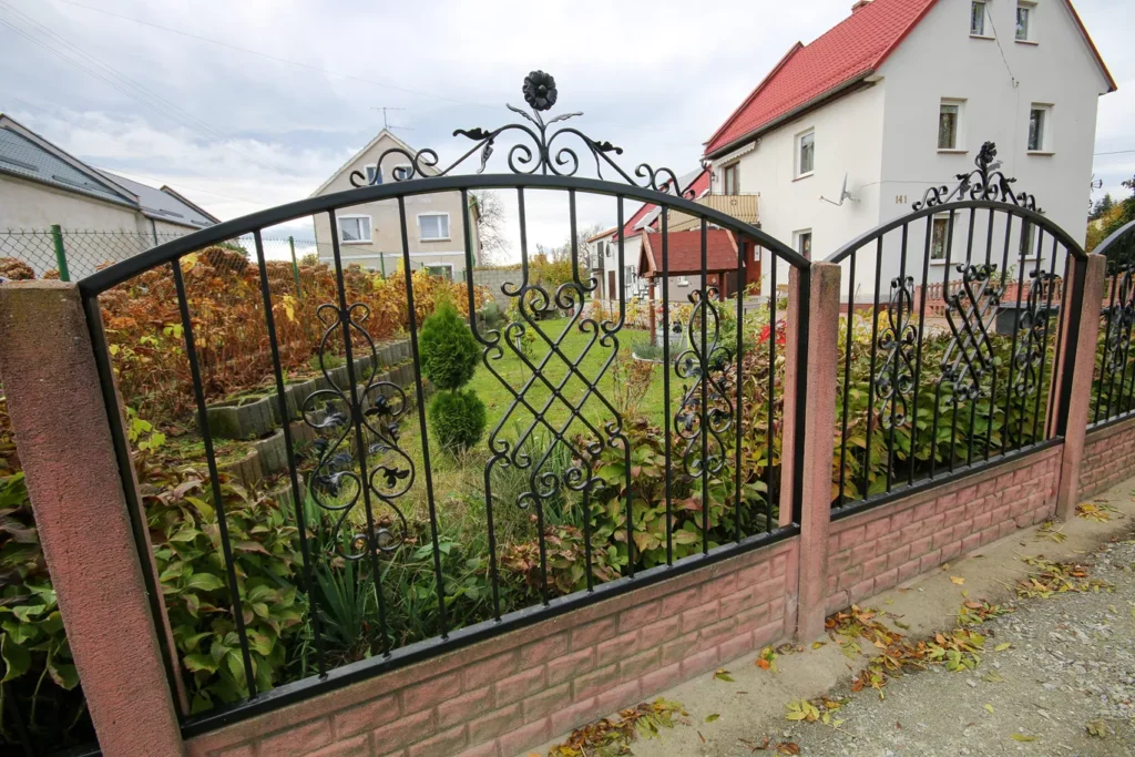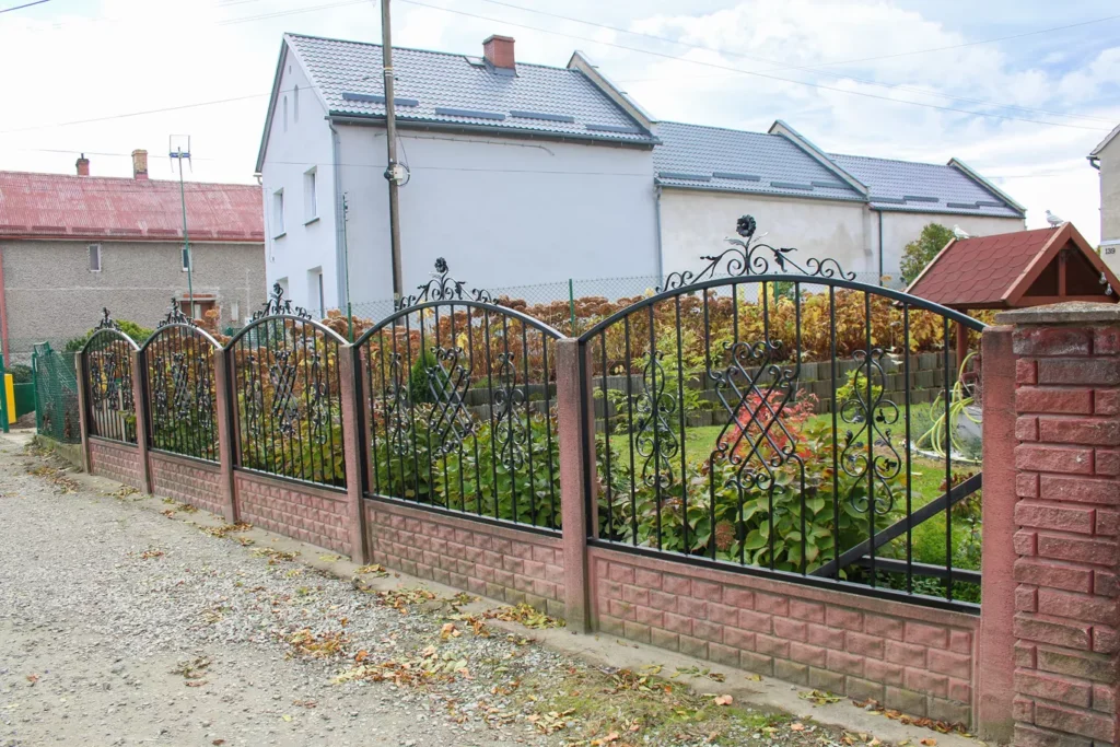 Kute przęsła ogrodzeniowe ze stali ocynkowanej z malowaniem proszkowym. Zakres obejmował wyłącznie nowe przęsła — istniejąca brama kuta i furtka zostały zachowane bez zmian.
