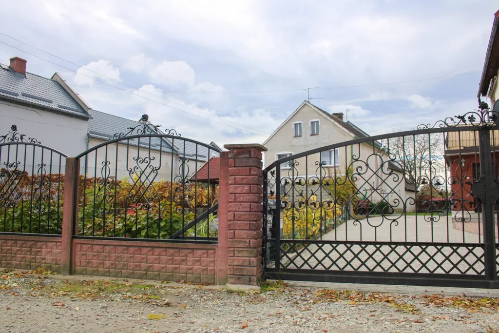 Klasyczny styl z łukowatymi przęsłami, ozdobnymi spiralami i kutymi detalami. Wzór i wymiary dopasowane do istniejącej bramy i furtki — stare betonowe przęsła zastąpione stalowymi, aby całość tworzyła spójną kompozycję.