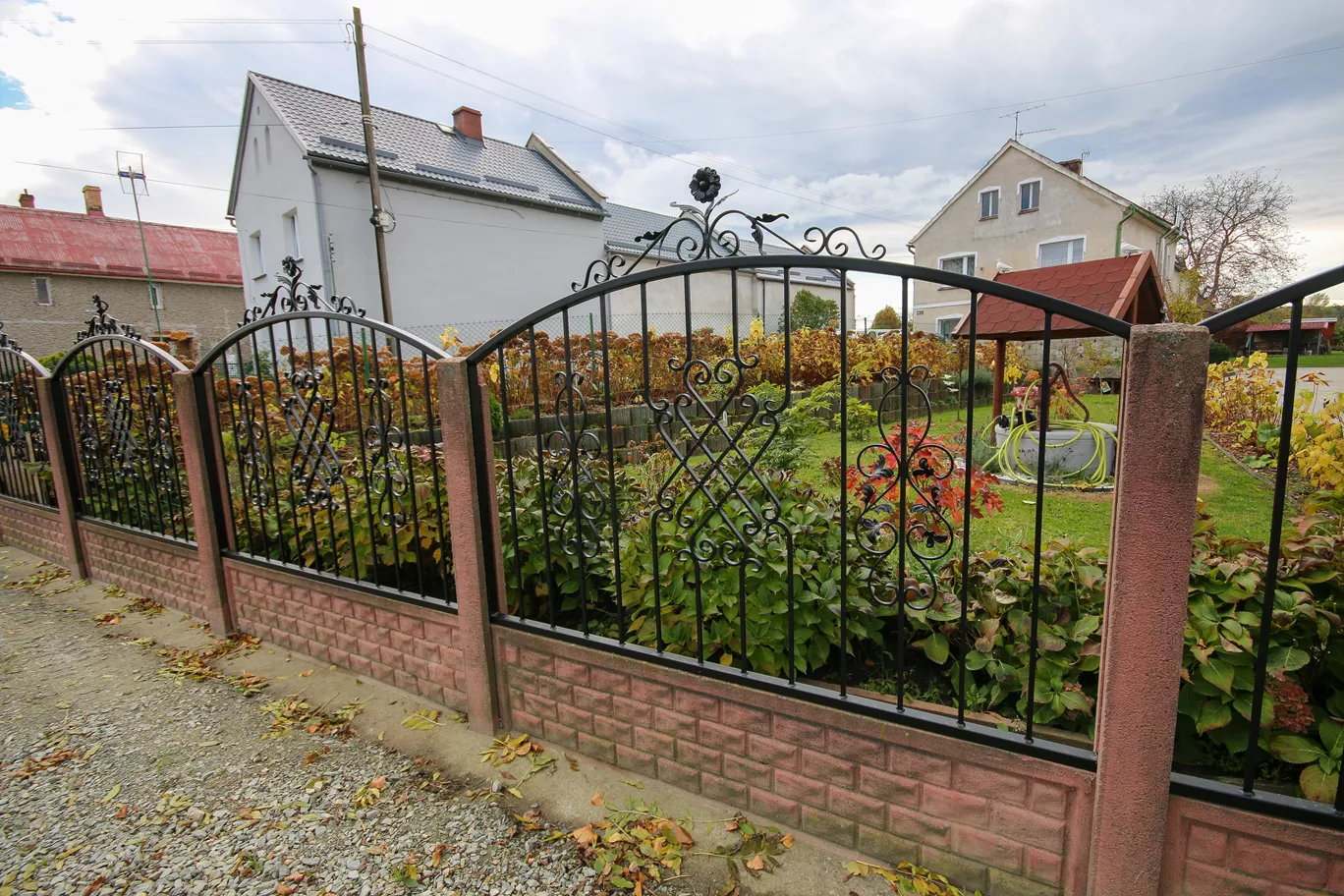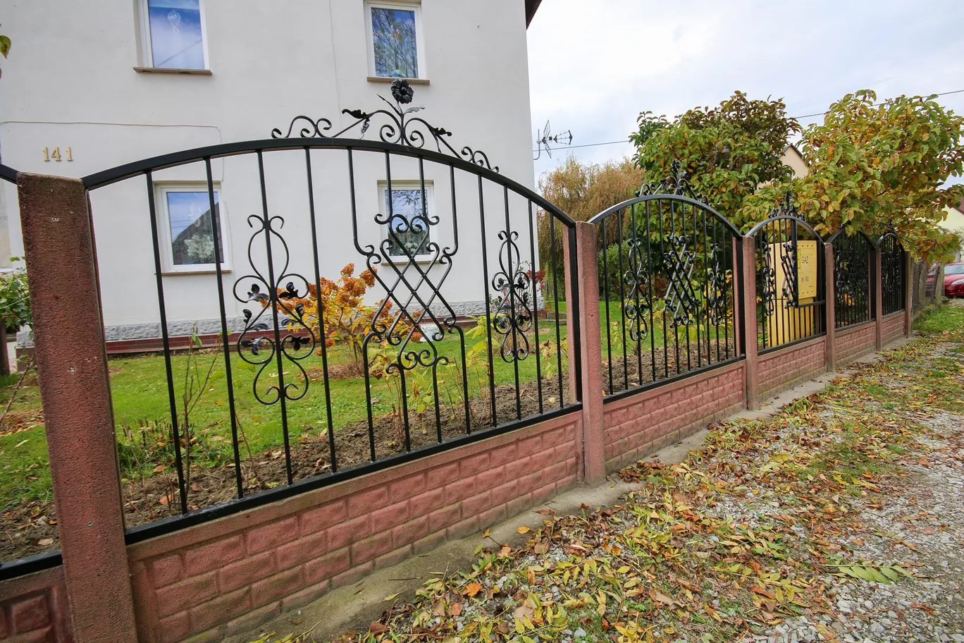 Kute przęsła ogrodzeniowe ze stali ocynkowanej z malowaniem proszkowym. Zakres obejmował wyłącznie nowe przęsła — istniejąca brama kuta i furtka zostały zachowane bez zmian.